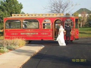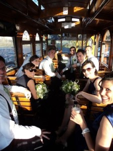Within the blink of an eye, the wedding was over and my HUSBAND and I jumped on a trolley with our bridal party to celebrate with one another while drinking champagne and a few beers, laughing, and swapping stories. We stopped for pictures along the way (which I will leave under wraps until our photographers publish the professional shots; we are so excited to see them! Karyn and Joe are amazing!) and drove around until it was time for the reception.
