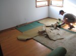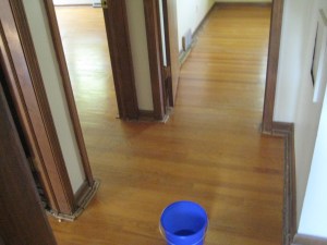 Starting out this morning, our carpet situation looked like this: Carpet in our bedroom, carpet in the guest bedroom, carpet in the third bedroom, carpet in the hallway, carpet in the dining room and kitchen, carpet in the bathrooms (Yes, we know. *shudder*)…