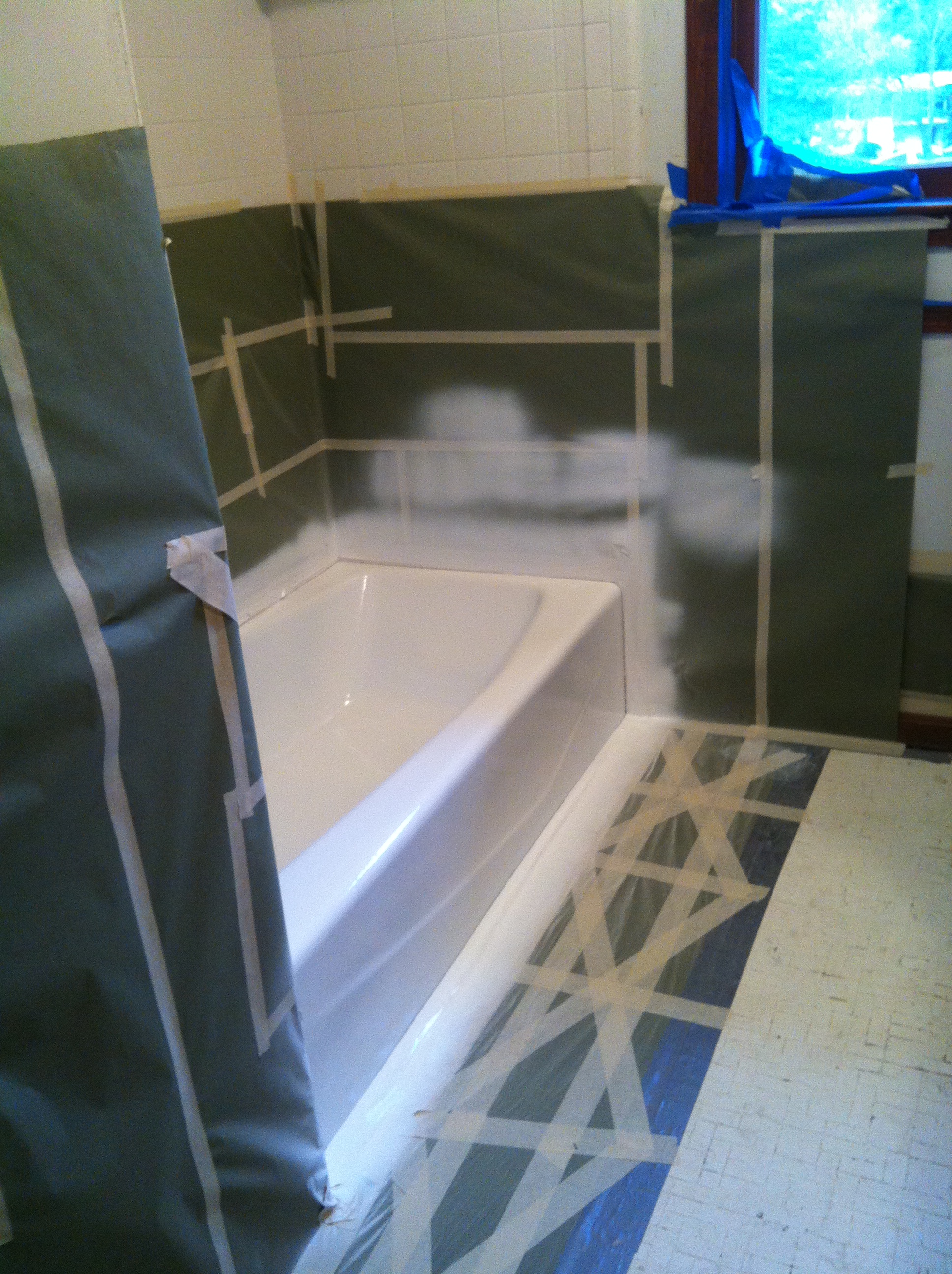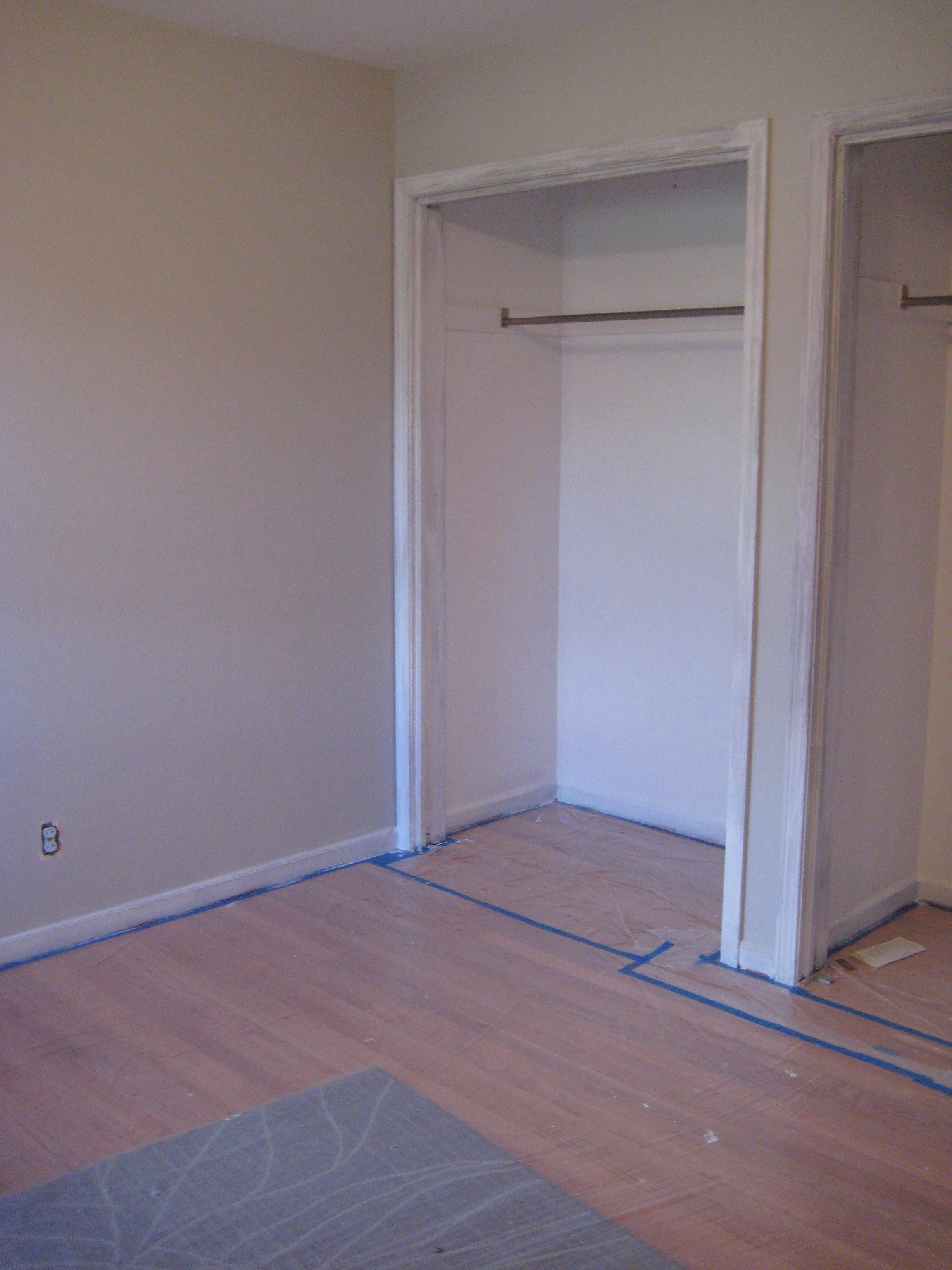 Over the past few weeks (and in no particular order), we’ve primed wood trim, washed walls, painted closets, painted ceilings, invited BathMasters in to re-glaze our tub, picked paint colors, removed remaining wallpaper, finished the wood floors (Freddy did a BEAUTIFUL job!), welcomed Wagner Electrical Service in for some electrical updates, had our chimney repaired by Kent Chimney, picked up a few tile samples, and found some time for yard work as well.