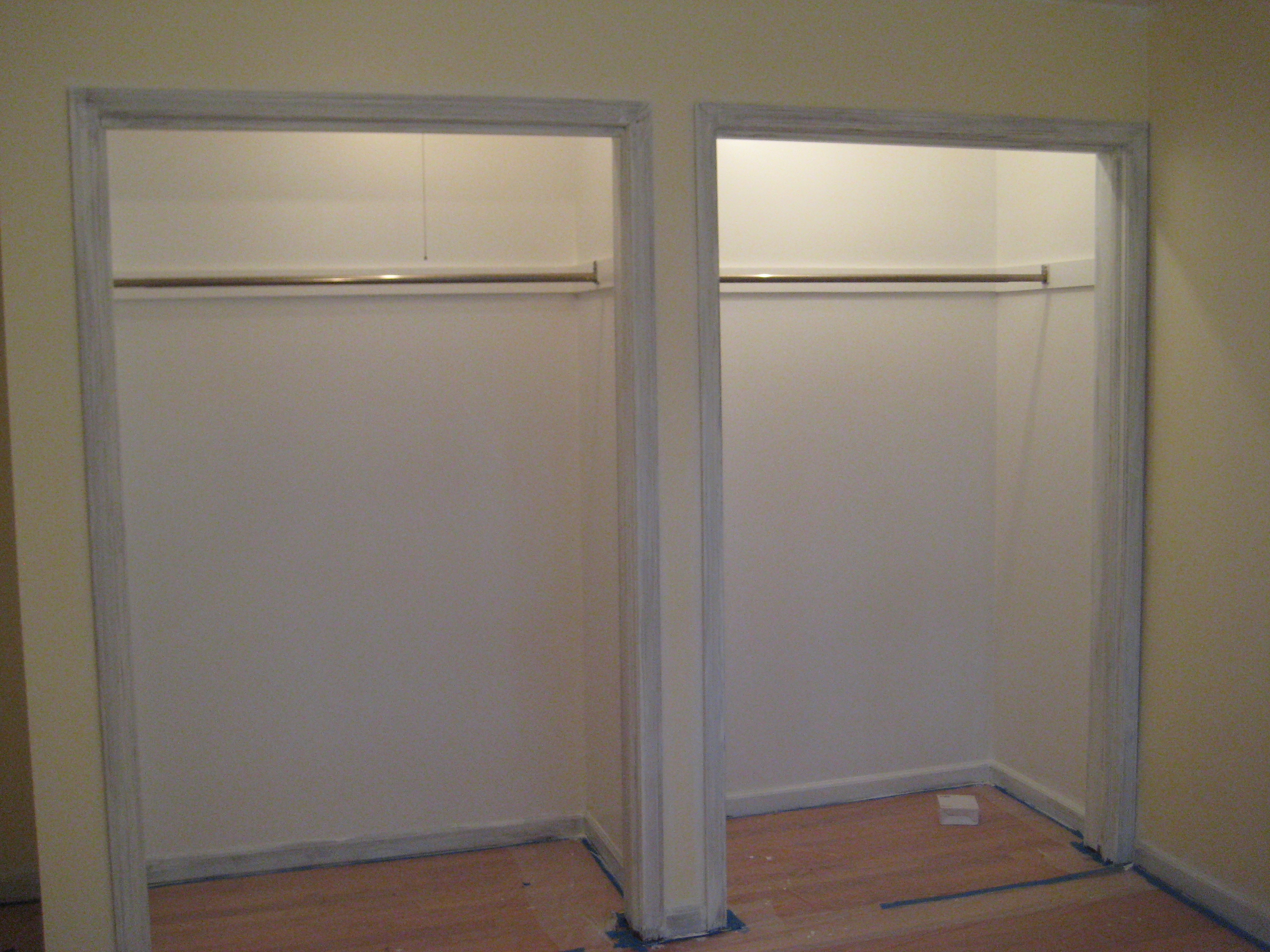 Re-glazed tub, “Blue Shamrock” in the family room (no more ceiling paper or wood paneling!), & His & Hers Closets painted!