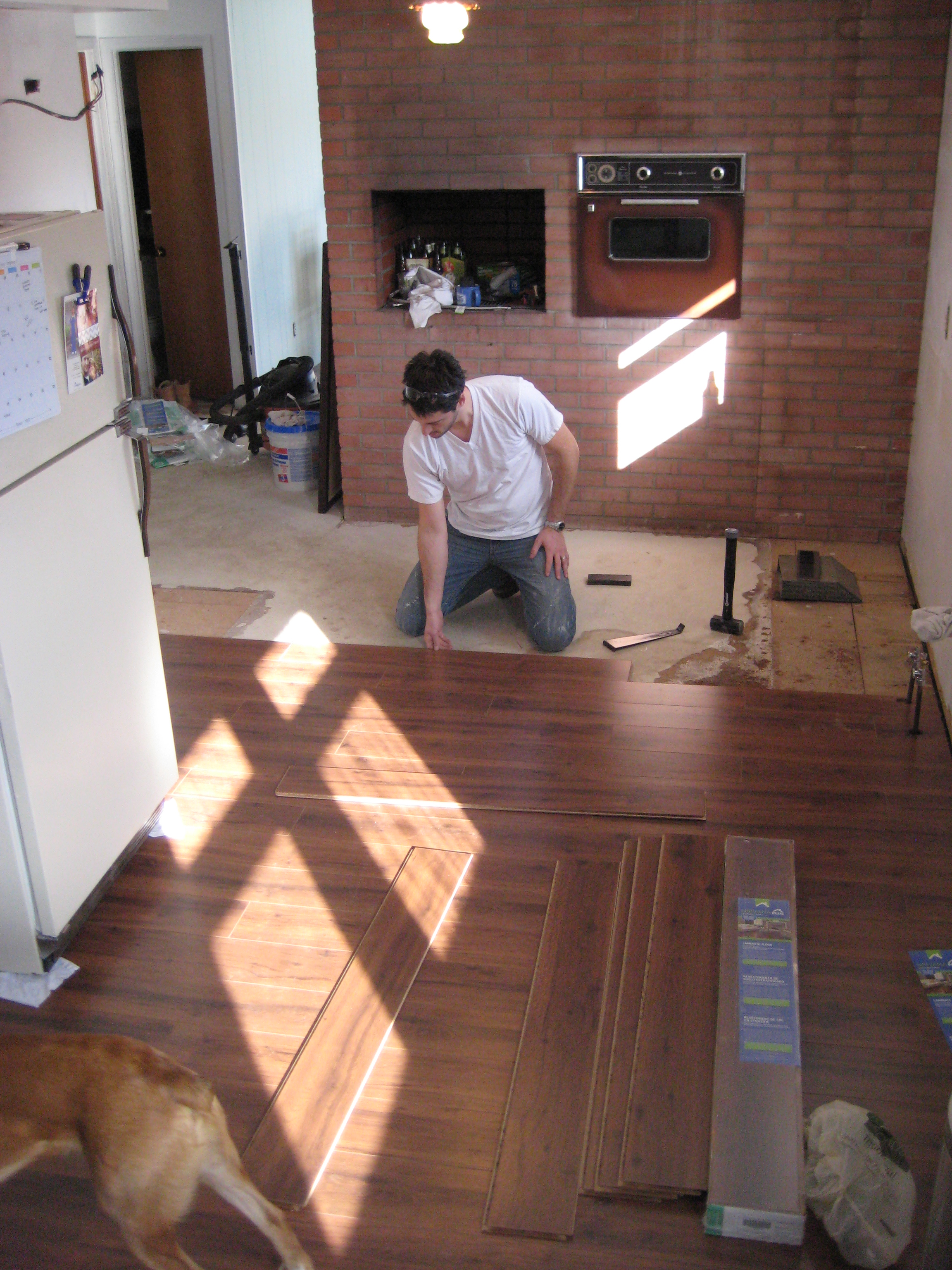 We considered making the kitchen space work despite the intense amount of work it would take to bring the cabinets up to par but when it came time to cut up our new flooring around these existing cabinets that needed to go, we decided to bite the bullet; new cabinets were ordered.
