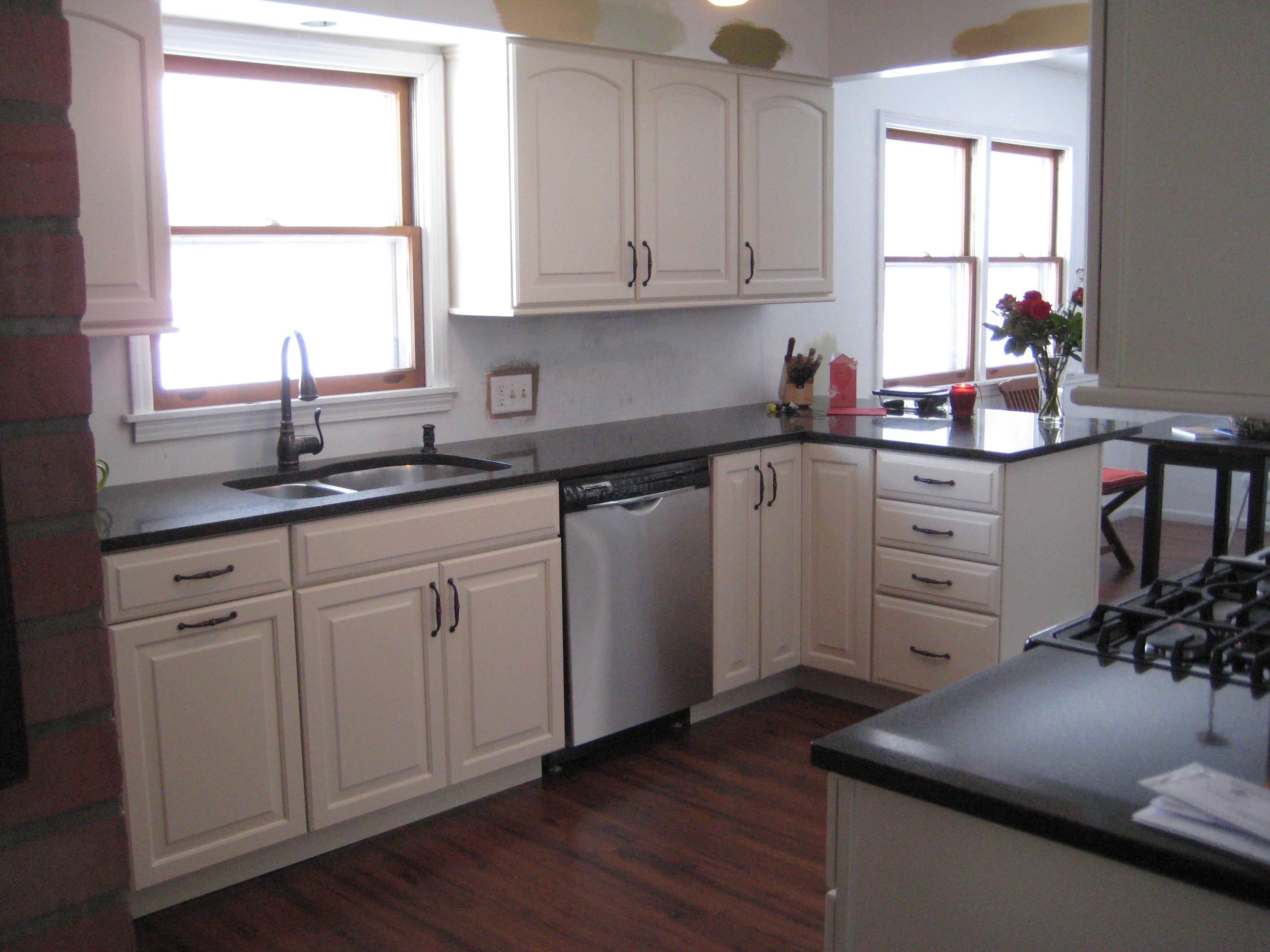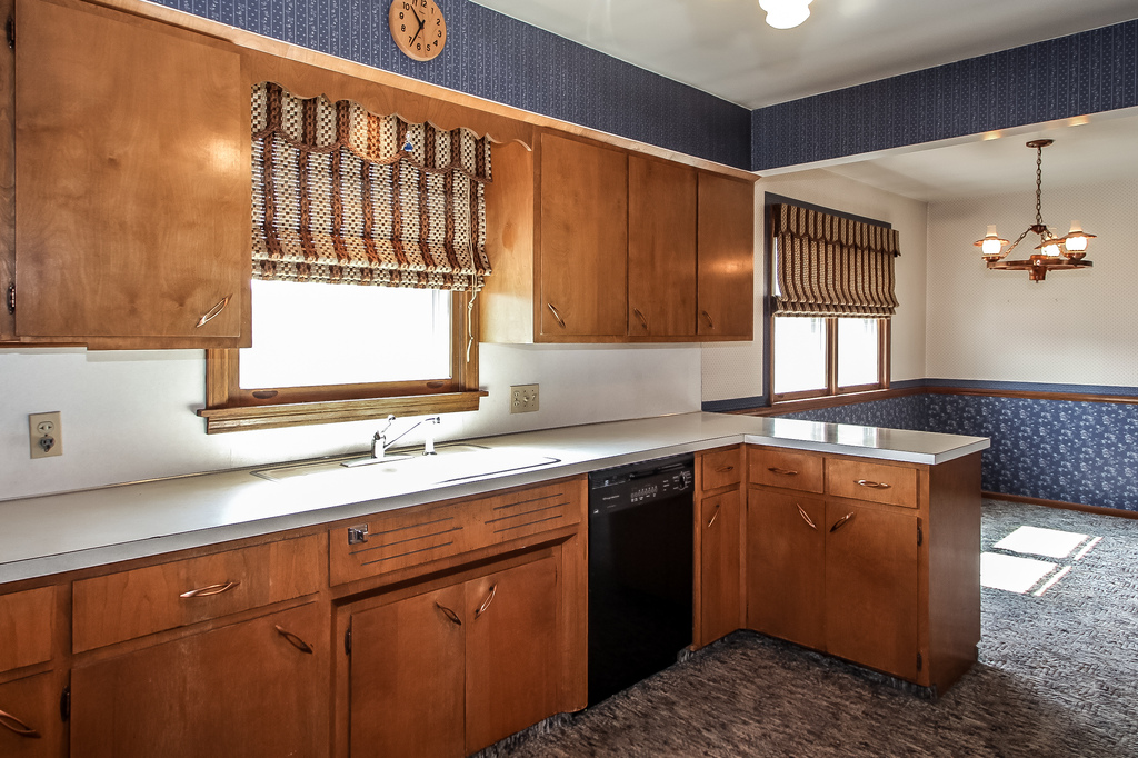 When we bought the house, we had our plan laid out to refurbished the existing cabinets. A fresh coat of paint and some new handles would give it brand new appeal! That’s what we thought anyway. The counter tops looked okay and we figured it would be too much to tackle up front with all the rest of the must-complete projects on our list.